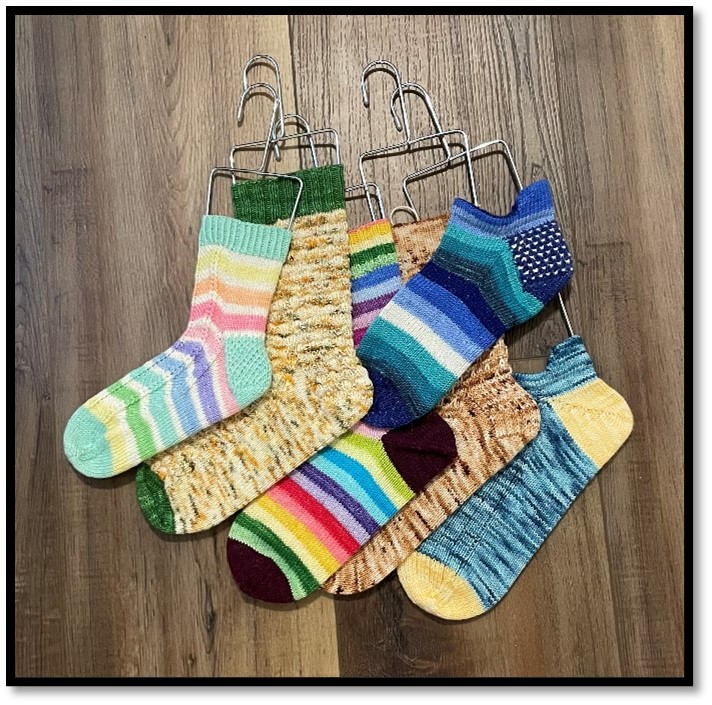 Students will learn how to knit socks that fit with an emphasis on different sock heel options. We will cover how to measure your feet and how your arch affects the fit of your socks. Students will receive a class handout that will include detailed information about different types of heels, how to modify them, worksheets to customize fit, and tips and tricks for sock knitting. I will have samples of different types of heels.