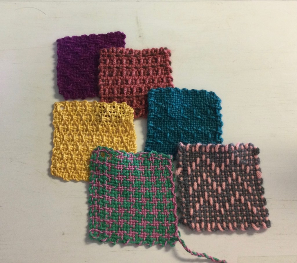 Materials: Knit swatches from homework in light or medium colored, smooth worsted weight yarn (#4)